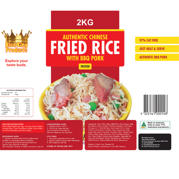 Fried Rice 2kg Rice King Premium Frozen Meals
